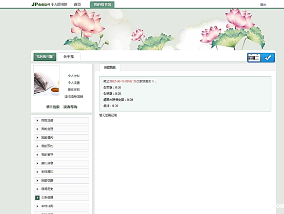如点击 “欠款信息”便可查看本人是否有超期欠款的书籍。