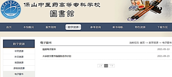 目前能使用的有“中文资源”、“多媒体资源”“电子图书”、“试用数据库”,如点击“电子图书”中的“超星电子书”便可打开相应链接。