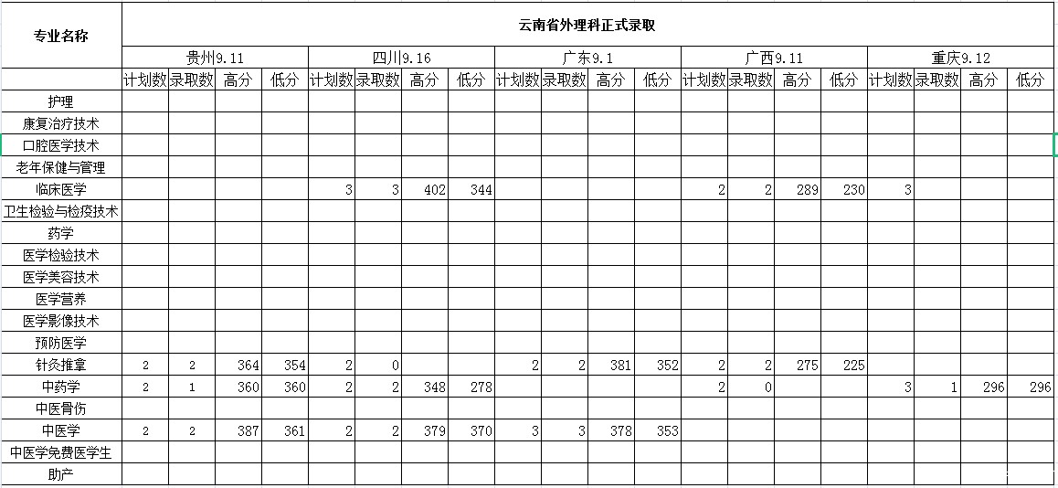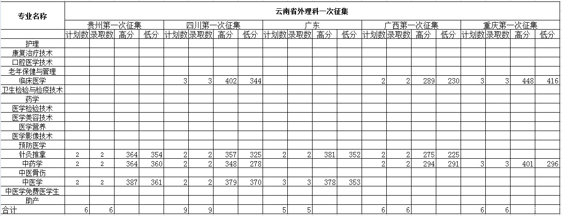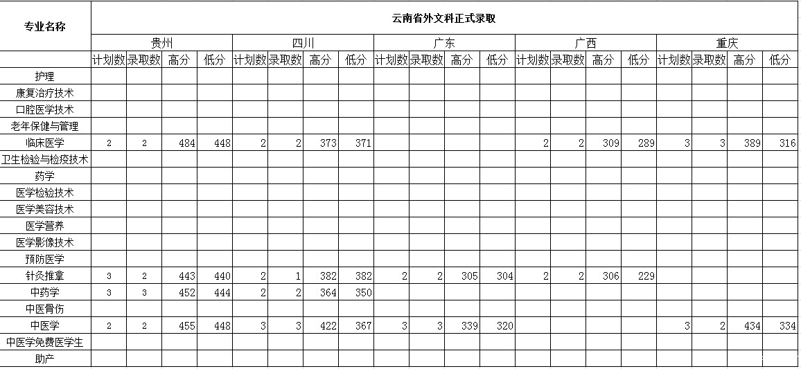 云南省外文理科录取情况统计