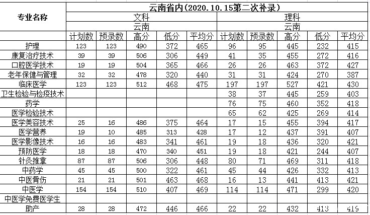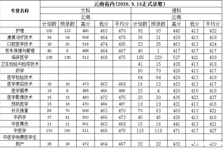 云南省内文理科录取情况统计